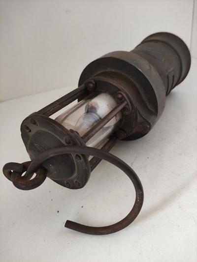 szklany klosz osłaniający żarówkę o pryzmatycznym kształcie. Dwukomorowy