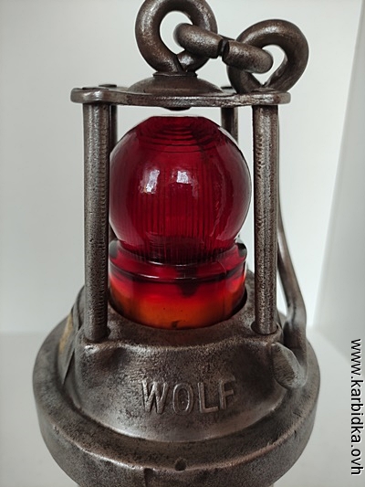 "WOLF" wytłoczona na górnej części lampy poniżej szklanego