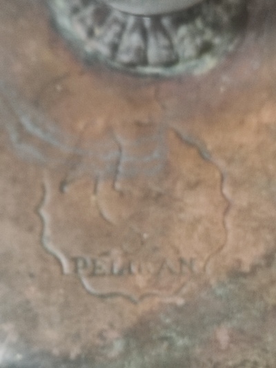 przedstawiającą rysunek ptaka-pelikana z podpisem "PELIKAN" w
