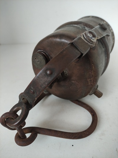 G1A. Mosiężna lampa karbidowa Fabryki Wyrobów Metalowych "Pelikan" w Warszawie, przedwojenna