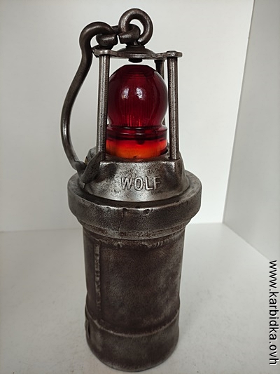 "WOLF" wytłoczona na górnej części lampy poniżej szklanego